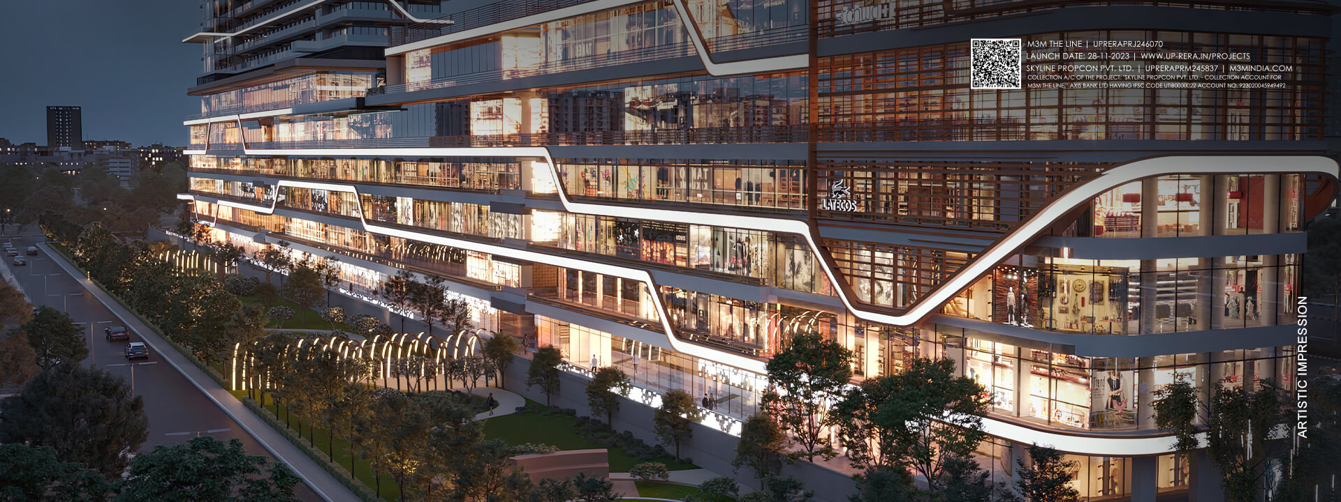 The advertisement is merely for general information purposes and contains proprietary information regard the Promoter Company, and does not constitute any offer or invitation for offer to sale. No part of information shall be circulated, shared, modified, stored or archived without the consent of the Promoter Company, which consent can be withdrawn at any time by the Promoter Company. The reader/visitor of the page/advertisement accepts and agrees to be bound by the legal terms of use. Noida Authority has executed a Lease Deed dated 17.05.2023 in favour of Skyline Propcon Private Limited, duly registered with the Office of Sub-Registrar Sadar-II, Gautam Budh Nagar. “M3M The Line” is a commercial Project, duly registered with U.P. Real Estate Regulatory Authority vide Regn. No. UPRERAPRJ246070 dated 28.11.2023. Company reserves the right for future development as per approvals of the concerned authorities. The information and contents herein, including all designs, layouts, specifications, dimensions, locations, services, images, landscape, facilities, amenities & infrastructure etc. are merely indicative and illustrative of the envisaged development; and not to scale, the same is subject to revision by the Promoter as may be required and approved by the Competent Authorities. All images are purely artistic conceptualization/stock image and not a legal offering. All areas and figures are indicative and the units mentioned herein are subject to availability. The Recipients/viewers are advised to exercise their discretion in relying on the information shown/provided and are requested to verify all the details, including area, amenities, services, terms of sales and payments and other relevant terms independently with the Promoter Company and take appropriate independent advice prior to concluding any decision for buying any Unit(s) in the Project. The use of word ‘M3M’ shall in no manner be construed or interpreted as M3M India Pvt. Ltd. being the Promoter and / or Developer of the Project. Copies of approvals are available for inspection at Promoter Company corporate office. Dispute with regard to the interpretation of information will be subject to the exclusive jurisdiction of District Courts at Noida, U.P. and Hon’ble High Court of Allahabad, Uttar Pradesh, India. For the purpose of this Project, 1 Hect. = 2.471 Acres, 1 Acre = 4840 sq.yds. or 4046.864 sq. mtrs., 1 sq.mtr. = 10.764 sq. ft.